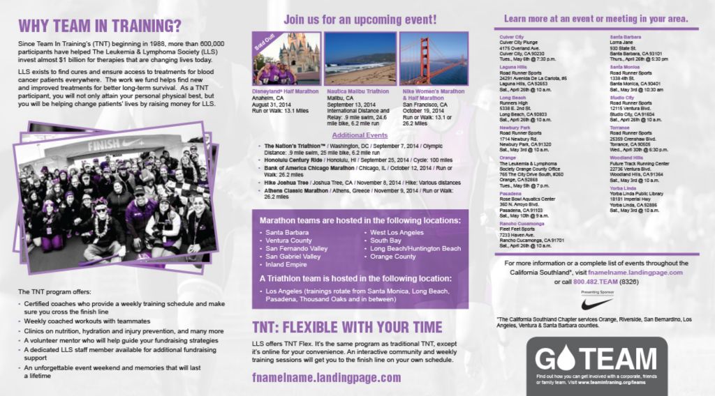 Marketing campaign created for Leukemia & Lymphoma Society Team in Training. Campaign consisted of: